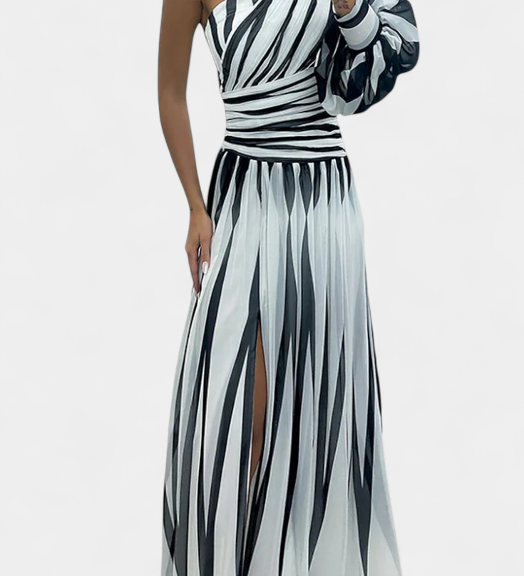 Bethania - Elegantna Dugačka Haljina s Prugama i Jednim Rame