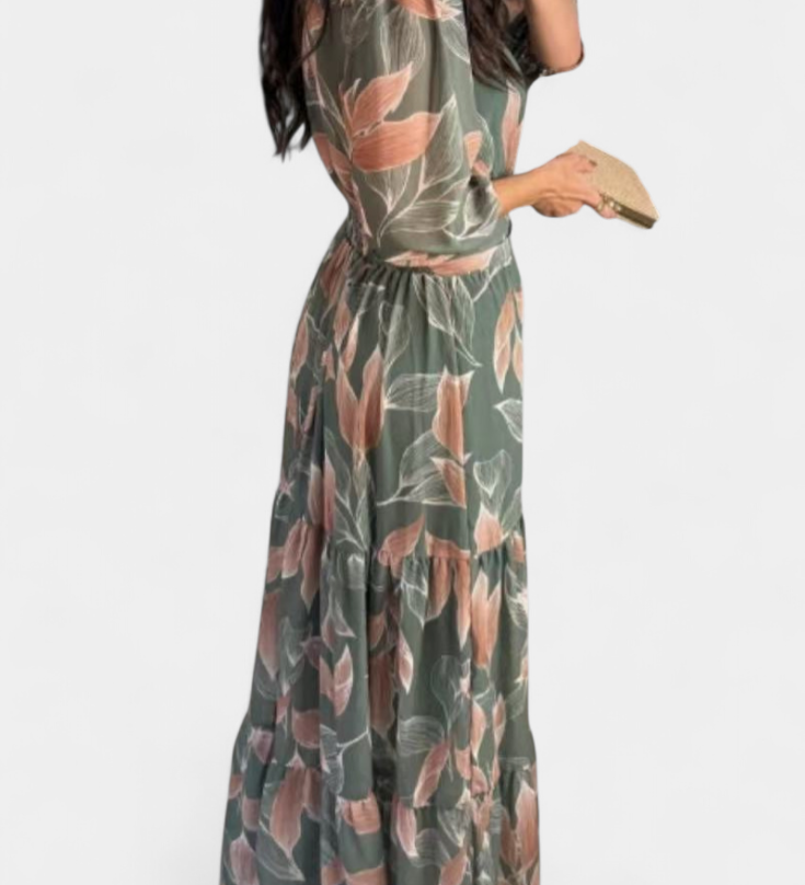 Aíša Duga Cvjetna Haljina s Lepršavom Siluetom i Motivom Listova