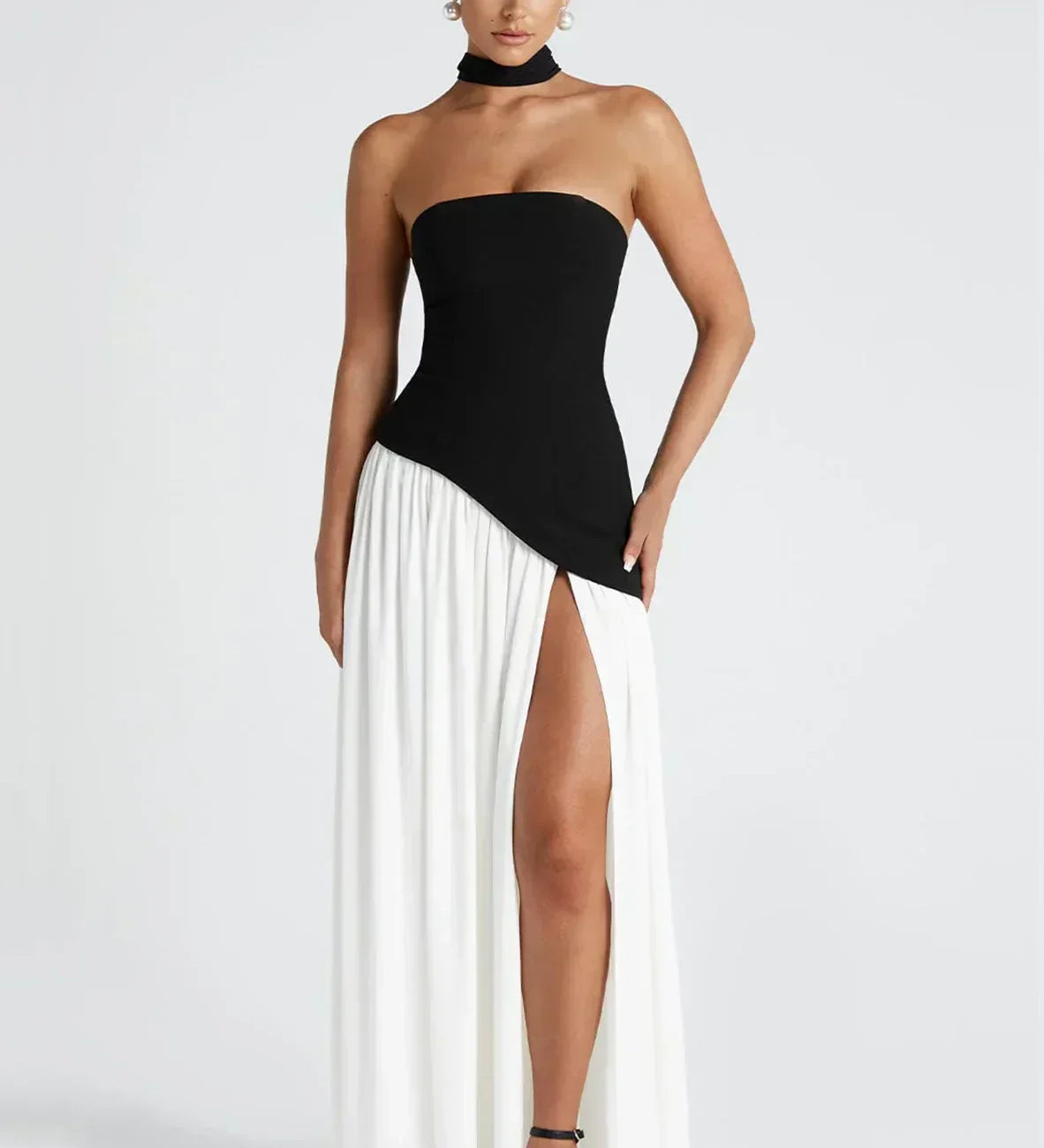 Elena – Maxi Haljina s Otvorenim Ramena, Raskidom i Chokerom