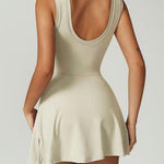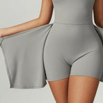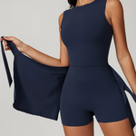 Otkrijte našu premium sportsku haljinu, dizajniranu s ugrađenim šortsem i elegantnim bočnim prorezom za maksimalnu udobnost i slobodu pokreta. Izrađena od našeg jedinstvenog materijala (75% poliamid – 25% elastan), pruža savršenu fleksibilnost.
